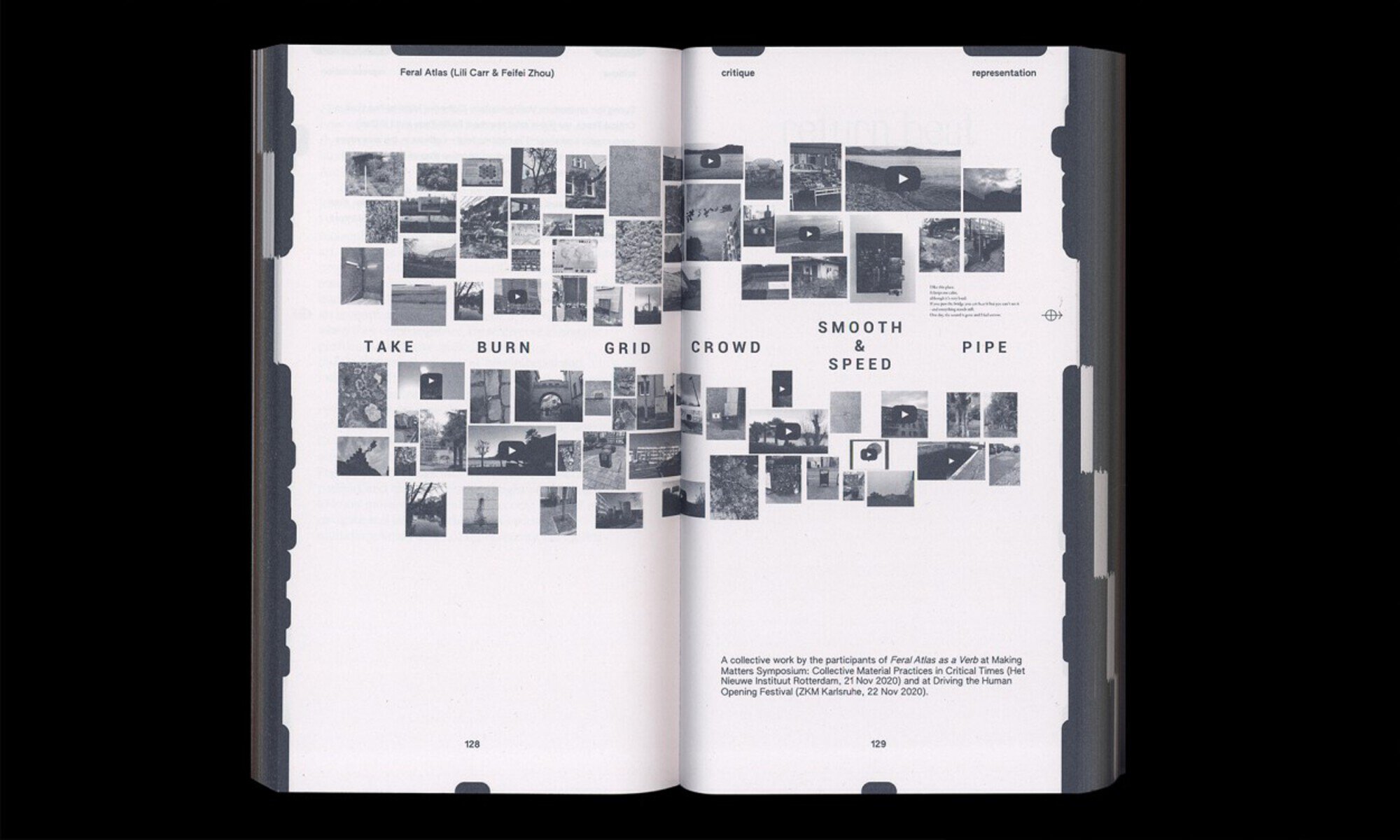 Cette question du renouvellement des formes graphiques a été abordée indirectement de nombreuses fois dans ce travail. Nous en avons vu des exemples : les pages de titre mises en page par Amélie Dumont à l’aide de CSS flexbox ; le programme 2013-2014 de la Balsamine créé par Open Source Publishing où quelques astuces graphiques permettent de laisser des indices sur le processus utilisé pour la mise en page (images coupées à la manière d’un flux, présence d’une barre de scroll, etc.) ; le livre Controverses. Mode d’emploi où Sarah Garcin emploie un script afin de disposer aléatoirement des éléments en fonction du numéro de la page sur laquelle ils apparaissent.