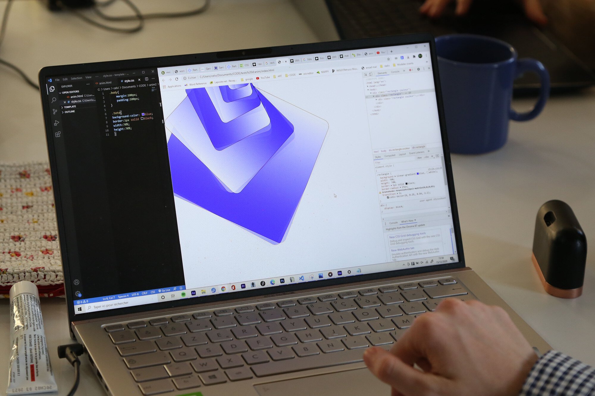 Ainsi, l’utilisation du code invite à concevoir des mises en page qui n’auraient pas pu être pensées si elles n’avaient pas directement été travaillées dans les navigateurs web et avec HTML et CSS. Ces mises en page embarquant avec elles quelque chose qui touche aux caractéristiques de ces langages. Les technologies du Web invitent donc les designers graphiques à penser le code comme un appareil réflexif intégré au processus de création et à la production de formes graphiques.