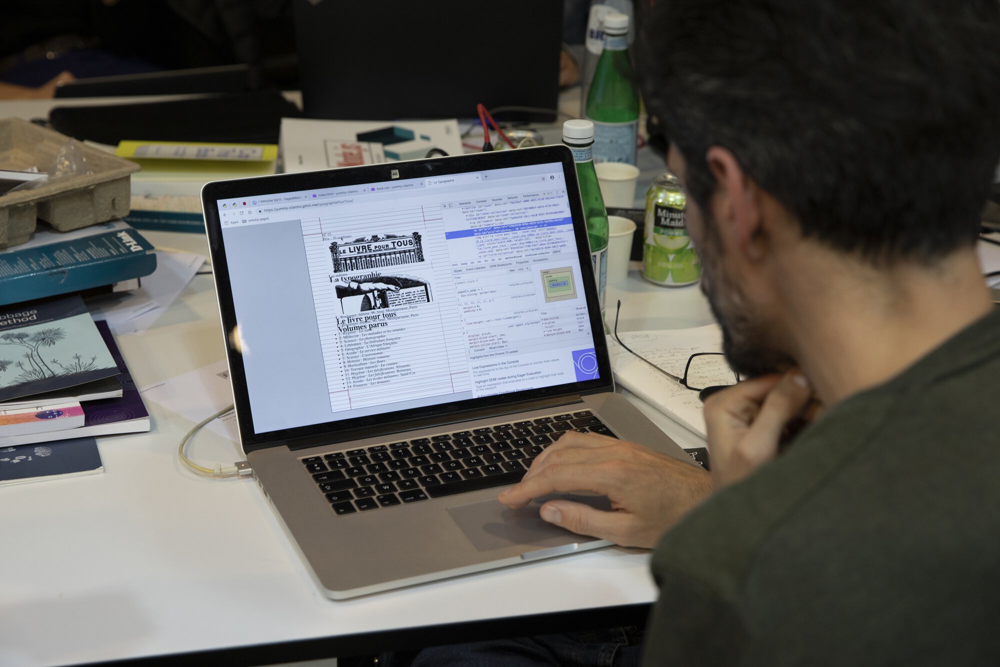 Nous souhaitons nous passer des logiciels classiques de mise en page et d’édition pour nous tourner vers des technologies plus accessibles et conviviales, pouvant évoluer et s’adapter à chaque projet. La programmation devient un outil de design et permet de réinventer sans cesse le processus de création éditoriale, questionnant les formats et les formes de publications.2