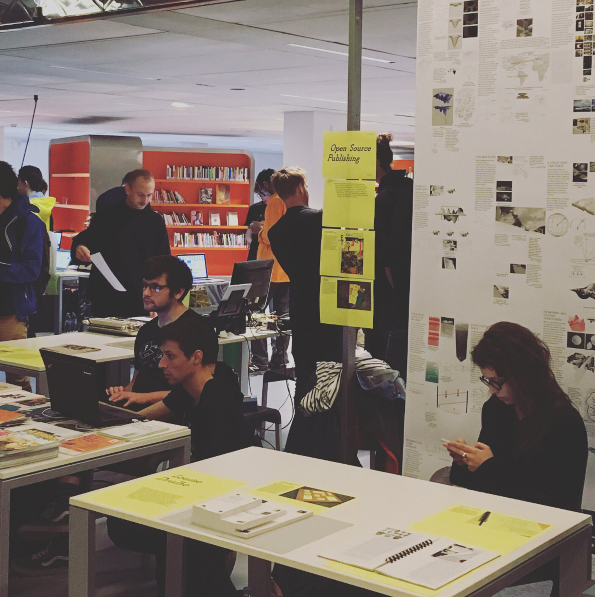 Les 20 et 21 octobre 2017 à la Gaîté Lyrique à Paris, se tient un salon de l’édition libre et alternative où les participant·e·s présentent des productions et ouvrages imprimés réalisés avec les technologies du web et/ou des outils expérimentaux (génératifs, collaboratifs, libres et open source). Le salon est organisé par le collectif informel PrePostPrint1, initié par l’artiste et designer Raphaël Bastide et la designer graphique Sarah Garcin quelques mois plus tôt. La présentation de l’évènement rend compte de ce qui anime ce groupe de participant·e·s :